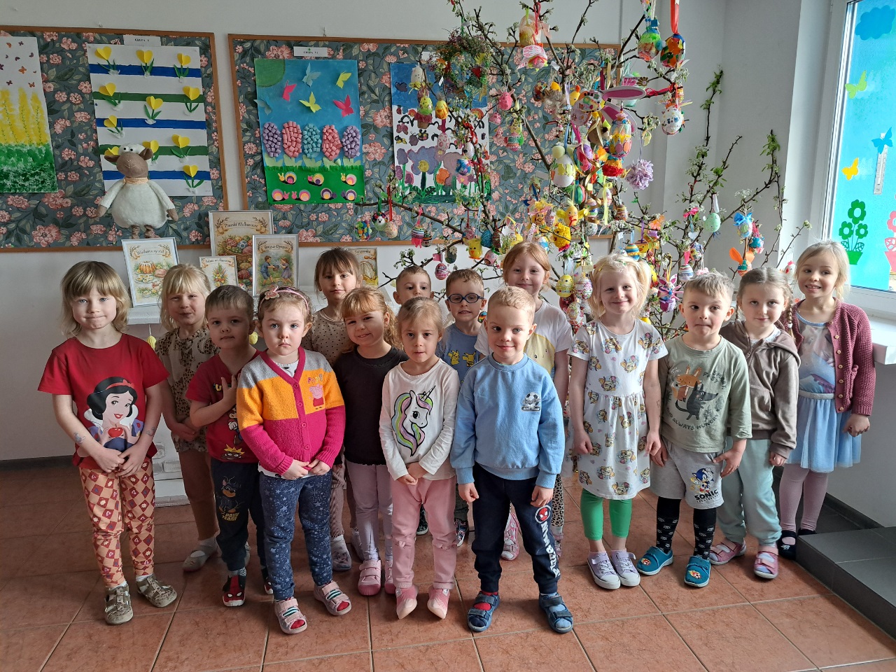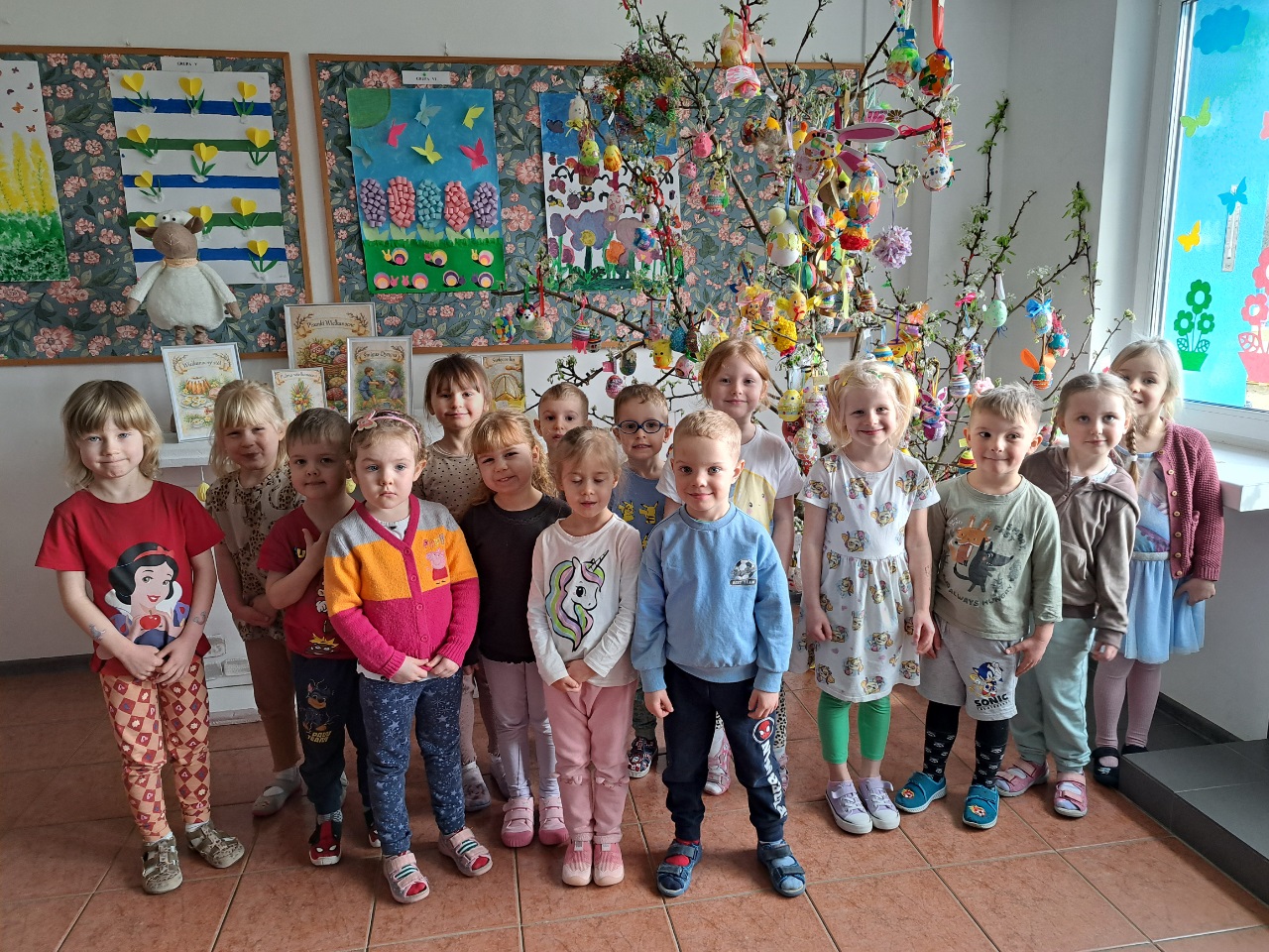 Ale piękne pisanki zdobia wielkanocne drzewko, brawo przedszkolaki